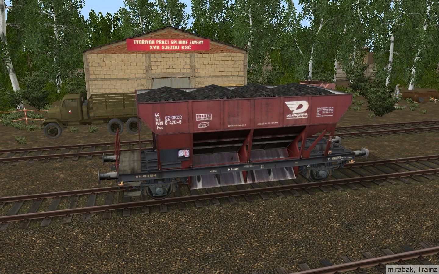 B-CZ-OKDD Fcc 639 0 420-8 Vagón Fcc OKDD, slouží pro přepravu uhlí jejihž nakládku podporuje. Vůz vznikl za podpory Jana Ptáčka, na voze jsou použity některé jeho součásti a textury. Foto na textury poskytli pánové Karel Noveský a Jagg. Všem třem děkuji. Funguje v TRS 12. A v TRS 19 a 22. Nahrána upravená verze.