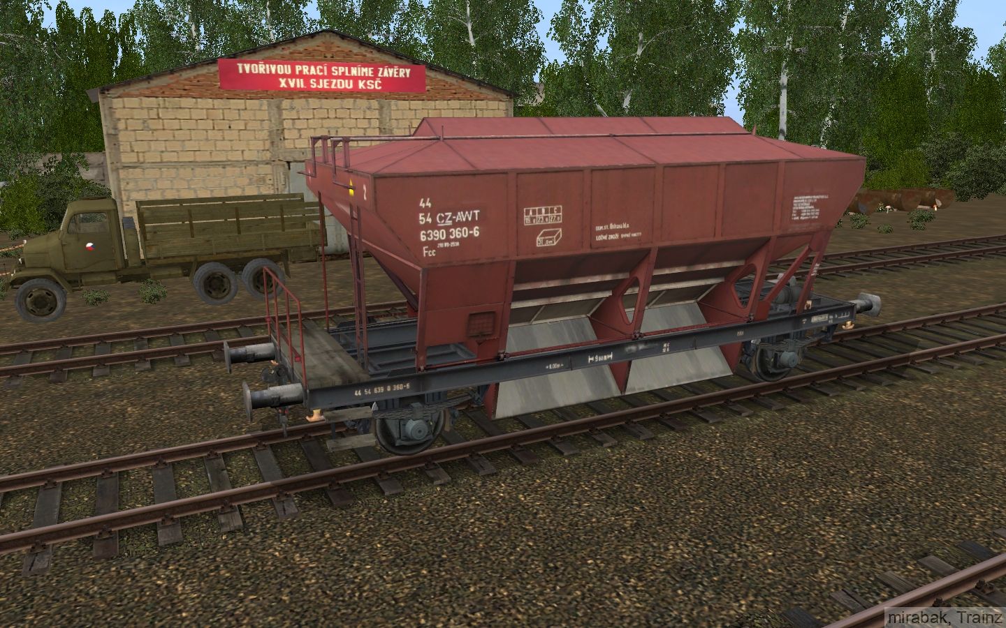 Vagón Fcc AWT slouží pro přepravu sypkých hmot, vápna a cementu, jejihž nakládku podporuje. Vůz vznikl za podpory Jana Ptáčka, na voze jsou použity některé jeho součásti a textury. Foto na textury poskytli pánové Karel Noveský a Jagg. Všem třem děkuji. Funguje v TRS 12, TRS 19 a v TRS22. Nahrána opravená verze.